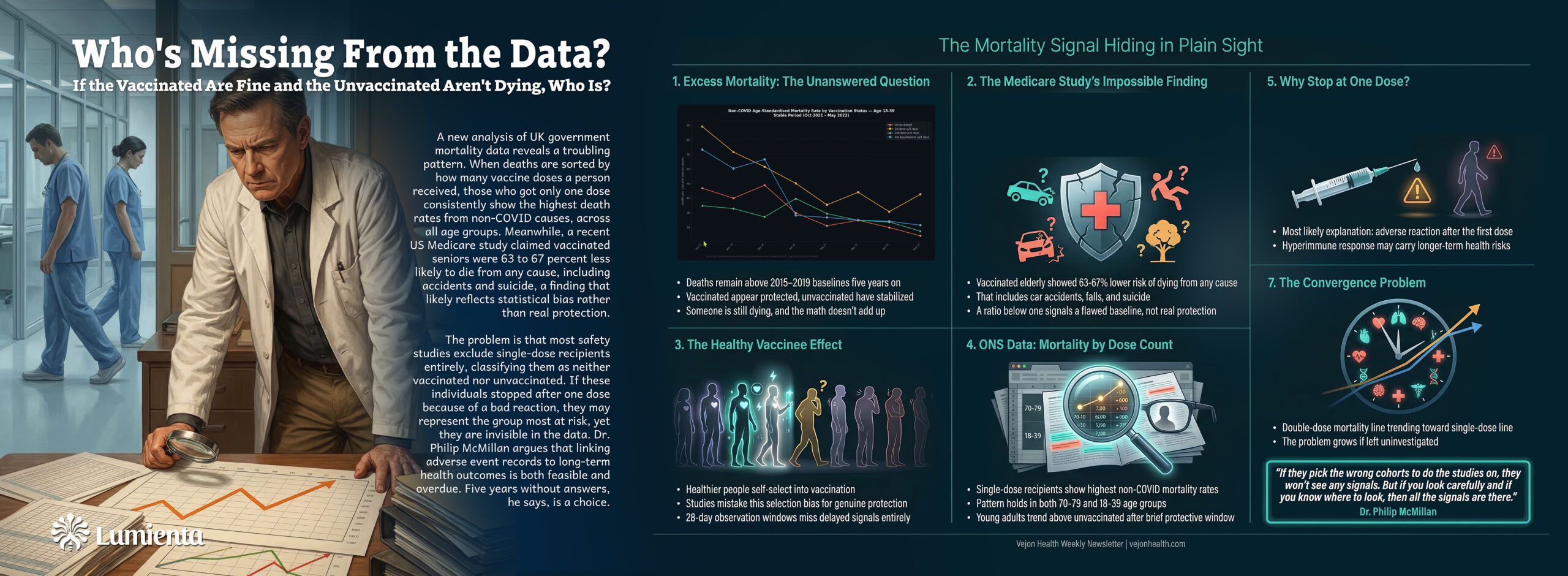 Why this is important: Publicly available UK mortality data, stratified by COVID vaccine dose count, reveals a troubling pattern. People who received only one COVID vaccine dose show persistently elevated non-COVID death rates, yet most safety studies exclude this group entirely. Linking adverse event records to long-term health outcomes could finally clarify whether this statistical blind spot conceals a real and growing signal.
